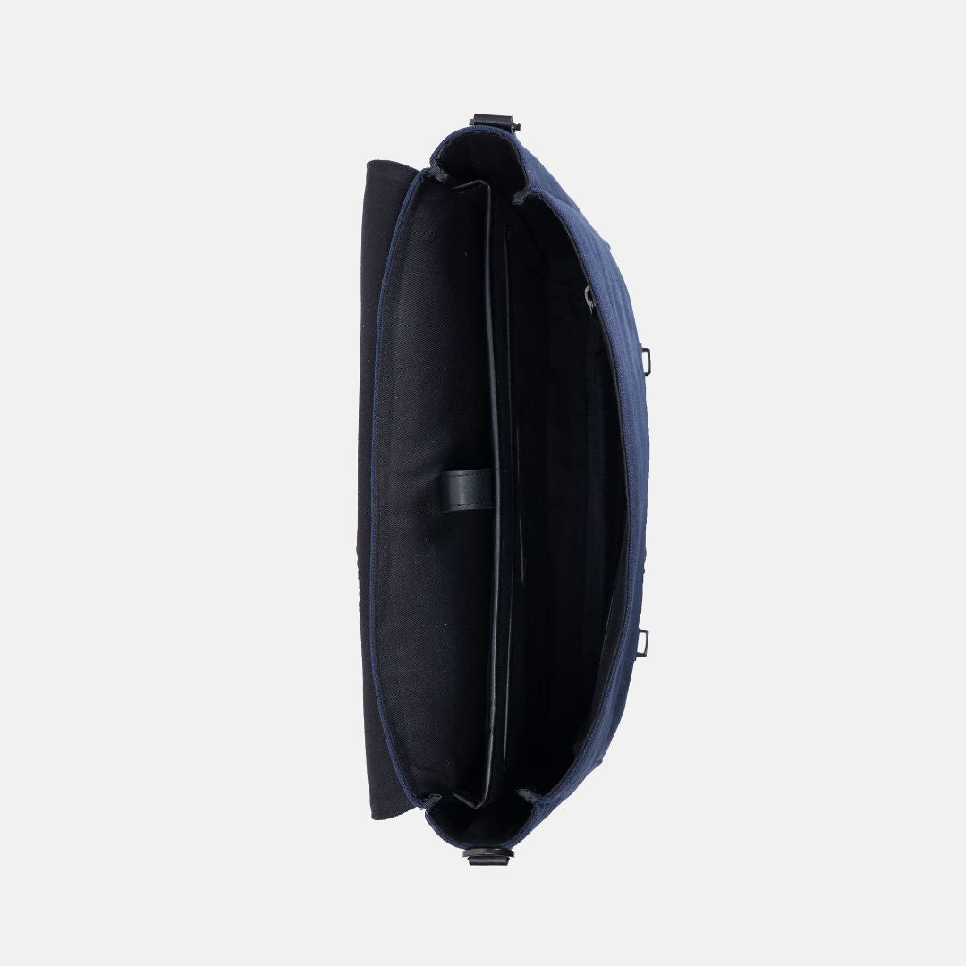 Crafted from heavy-duty canvas and detailed with full-grain leather trims, it blends timeless design with everyday practicality. The structured silhouette, flap closure, and concealed locks give it a distinctly professional look — while the lightweight construction makes it perfect for daily commutes or business travel.